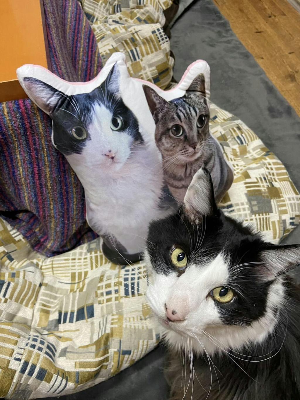 体同士がくっついたお写真をご用意いただければ、複数頭でひとつのクッションをお作りすることも可能です(追加料金なし)。