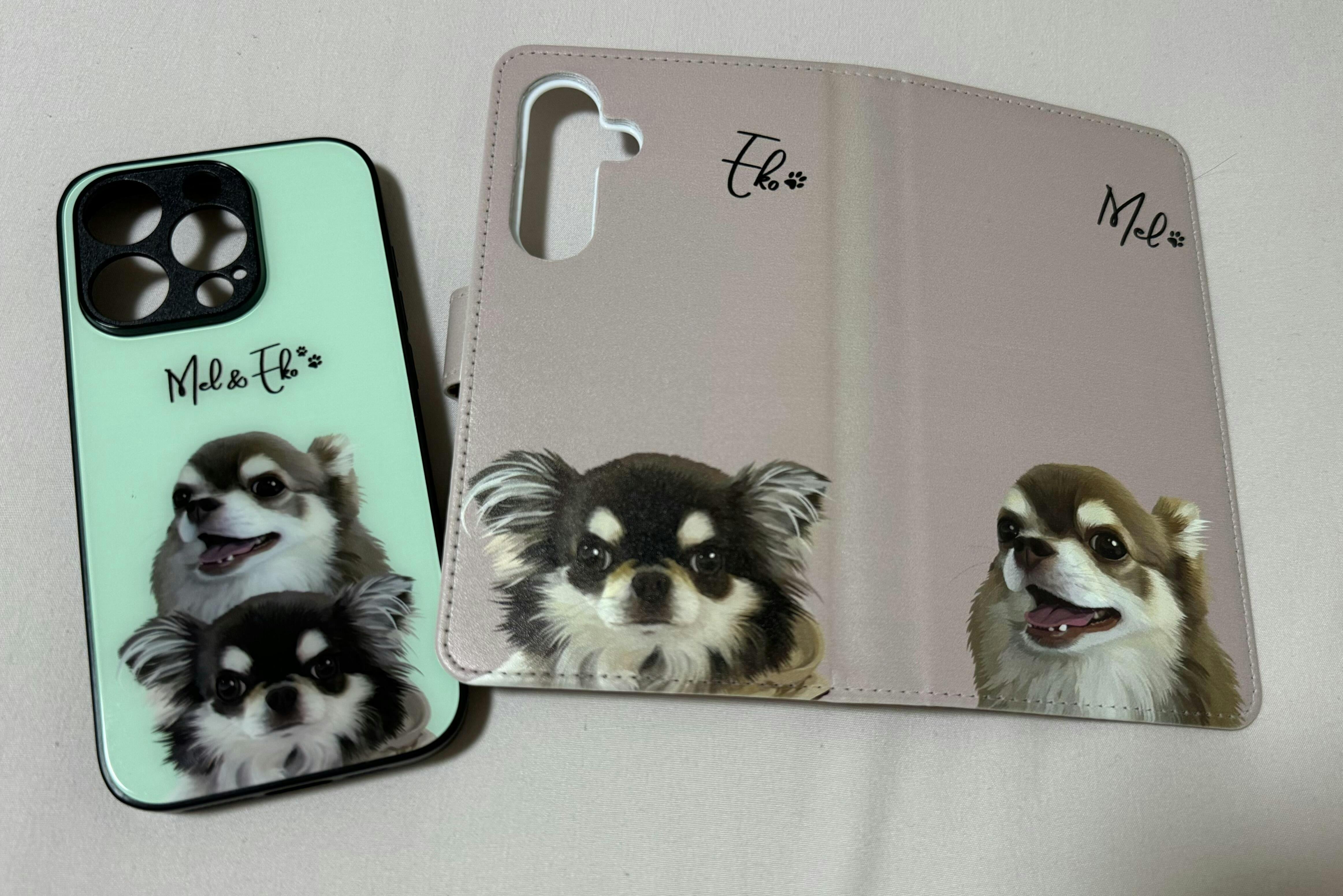 ひとつのスマホケースに複数のペットをお入れすることも可能です◎この場合、頭数分のお写真をお送りください。